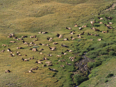 I saw only a few elk until I reached the Alpine Center. From there it was possible to see two large herds, each comprising 200-300 elk.
